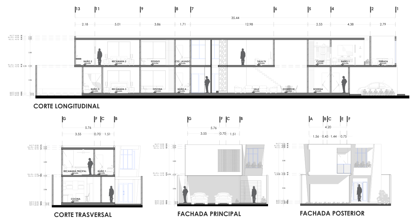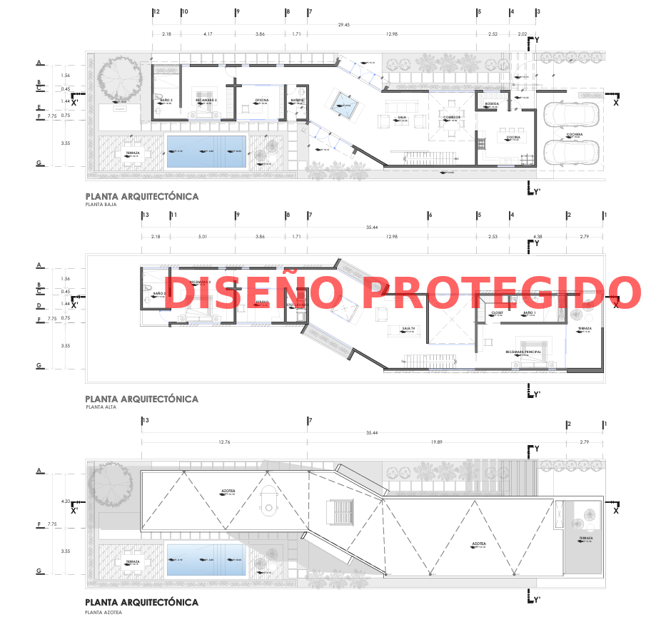 - Aprovechamiento eficiente de un terreno alargado, con circulación clara y espacios bien definidos.